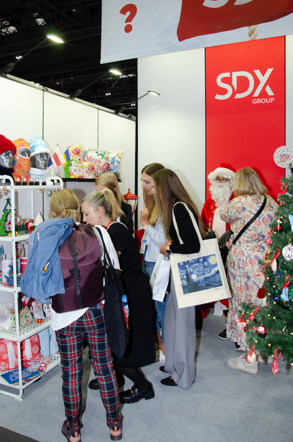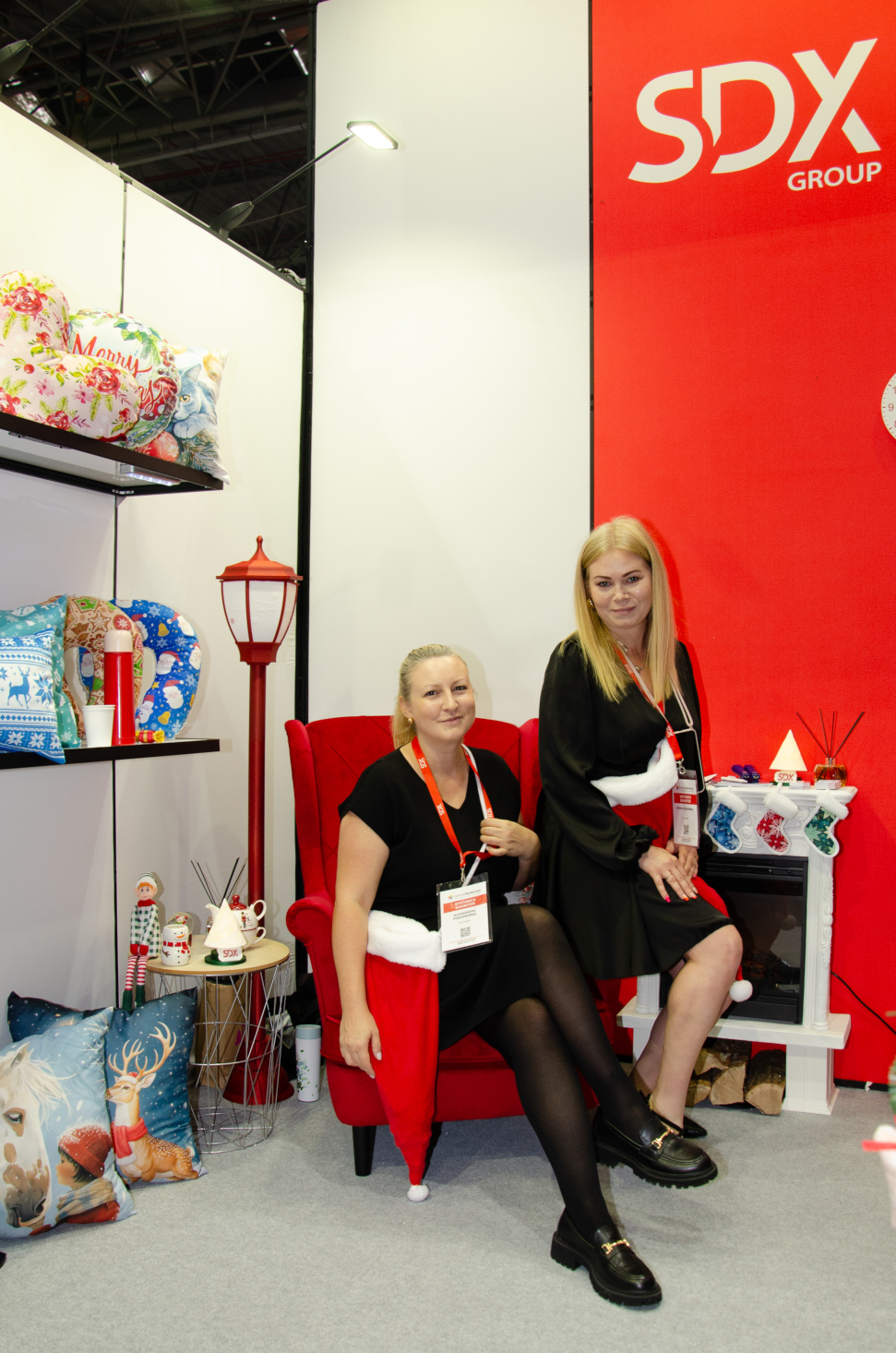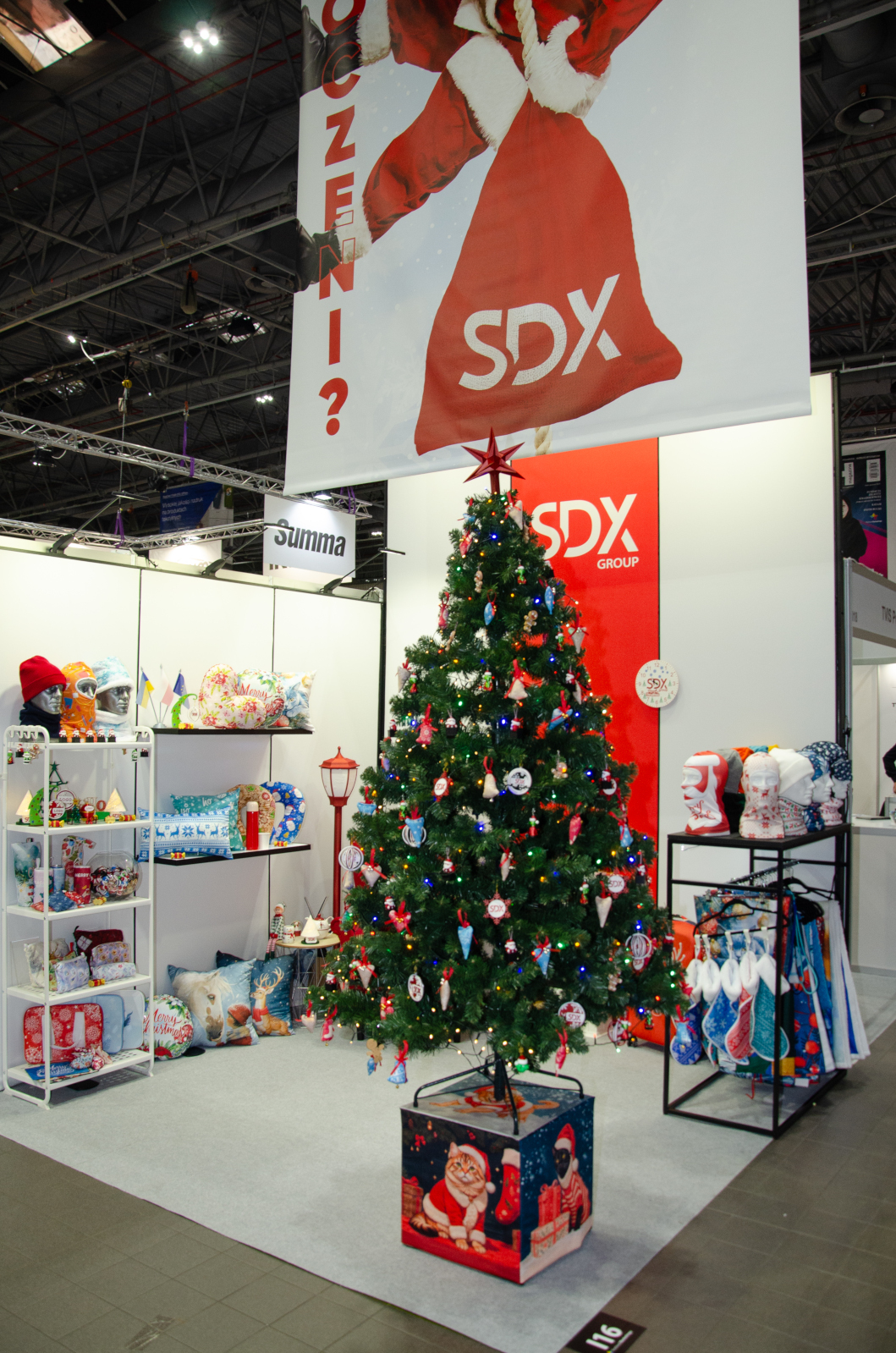 Unser festliches Stand mit Weihnachtsbaum, Santa Claus und Elfen zog die Besucher an.